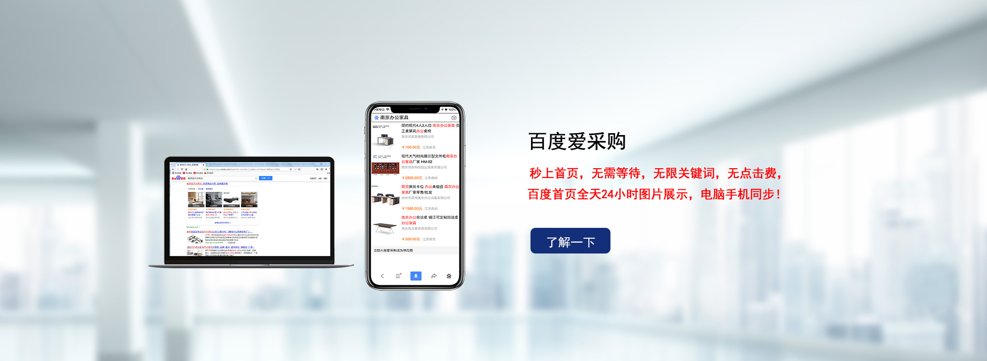 百度愛采購:不限關鍵詞、快速上首頁、24小時電腦和手機同步推廣